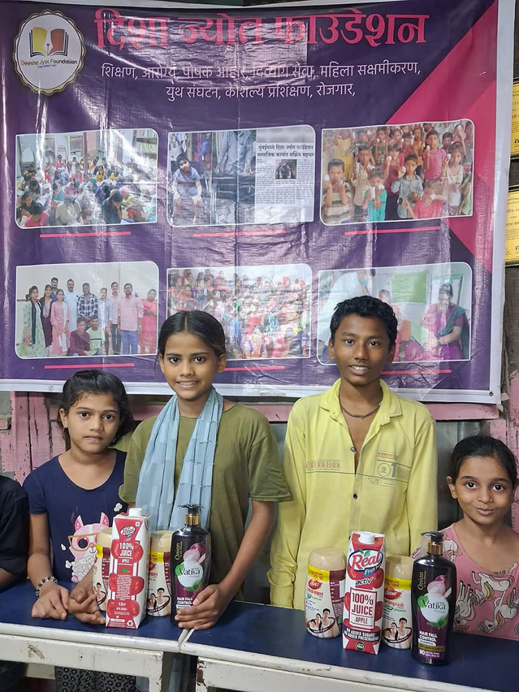 We received various products such as juices, toothpaste, shampoo, heart oil, and Dabur Chyawanprash through the CSR fund of Dabur Company. These products were distributed across areas including Sion, Dharavi, Kurla, Pratiksha Nagar, Antop Hill, and Mankhurd.This event was organised on 7th November 2024